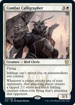 Whenever a player attacks one of your opponents, that attacking player creates a tapped 2/1 white and black Inkling creature token with flying that's attacking that opponent.