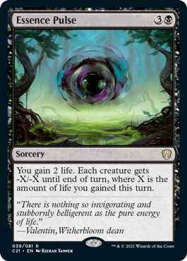 あなたは2点のライフを得る。ターン終了時まで、すべてのクリーチャーは-X/-Xの修整を受ける。Xは、あなたがこのターンに得たライフの点数に等しい。