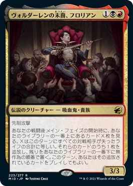 あなたの戦闘後メイン・フェイズの開始時に、あなたのライブラリーの一番上にあるカードX枚を見る。Xは、このターンにすべての対戦相手が失ったライフの合計に等しい。それらのカードのうち1枚を追放し、残りをあなたのライブラリーの一番下に無作為の順番で置く。このターン、あなたはその追放されているカードをプレイしてもよい。