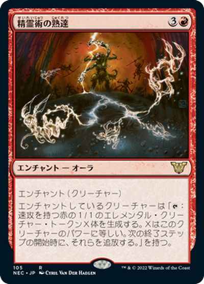 エンチャントされているクリーチャーは「(T):速攻を持つ赤の1/1のエレメンタル(Elemental)・クリーチャー・トークンをX体生成する。Xはこのクリーチャーのパワーである。次の終了ステップの開始時にそれらを追放する。」を持つ。