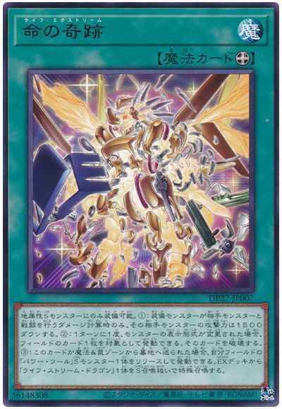 地属性Sモンスターにのみ装備可能。・:装備モンスターが相手モンスターと戦闘を行うダメージ計算時のみ、その相手モンスターの攻撃力は1500ダウンする。・:1ターンに1度、モンスターの表示形式が変更された場合、フィールドのカード1枚を対象として発動できる。そのカードを破壊する。・:このカードが魔法&罠ゾーンから墓地へ送られた場合、自分フィールドの「パワー・ツール」Sモンスター1体をリリースして発動できる。EXデッキから「ライフ・ストリーム・ドラゴン」1体をS召喚扱いで特殊召喚する。