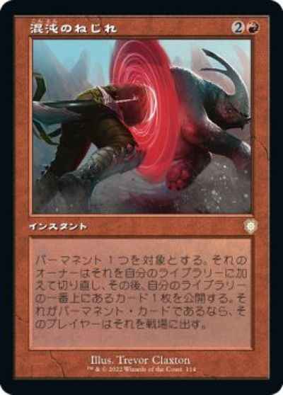 パーマネント1つを対象とする。それのオーナーはそれを自分のライブラリーに加えて切り直し、その後、自分のライブラリーの一番上のカードを公開する。それがパーマネント・カードである場合、そのプレイヤーはそれを戦場に出す。