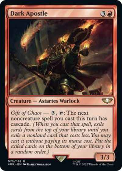 Gift of Chaos --- {3}, {T}: The next noncreature spell you cast this turn has cascade. (When you cast that spell, exile cards from the top of your library until you exile a nonland card that costs less. You may cast it without paying its mana cost. Put the exiled cards on the bottom of your library in a random order.)