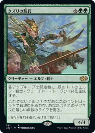 各アップキープの開始時に、緑の1/1の(elf)・戦士(Warrior)クリーチャー・トークン1体を生成する。 他のエルフ(Elf)1体があなたのコントロール下で戦場に出るたび、あなたはそれのタフネスに等しい点数のライフを得る。