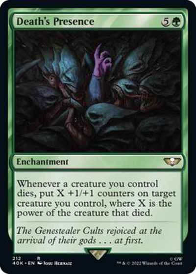 あなたがコントロールするクリーチャーが1体死亡するたび、あなたがコントロールするクリーチャー1体を対象とし、それの上に+1/+1カウンターをX個置く。Xはその死亡したクリーチャーのパワーである。