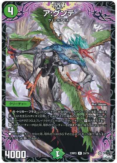 このクリーチャーが出た時、相手のコスト5以下のエレメントを1つ選び、持ち主のマナゾーンに置いてもよい。