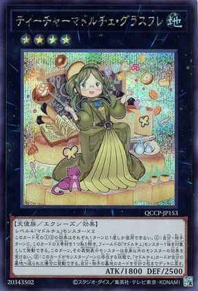 レベル4「マドルチェ」モンスター×2 このカード名の(1)(2)の効果はそれぞれ1ターンに1度しか使用できない。(1):自分・相手ターンに、このカードのX素材を1つ取り除き、フィールドの「マドルチェ」モンスター1体を対象として発動できる。このターン、その表側表示モンスターは自身以外のモンスターの効果を受けない。(2):このカードがモンスターゾーンに存在する状態で、「マドルチェ」カードが自分の墓地へ送られた場合に発動できる。自分・相手の墓地のカードを合計2枚までデッキに戻す。