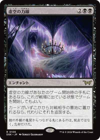 虚空の力線があなたのゲーム開始時の手札にあるなら、これが戦場に出ている状態でゲームを開始してもよい。 カードがいずこかから対戦相手の墓地に置かれるなら、代わりにそれを追放する。