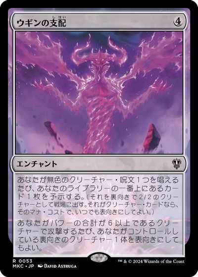 あなたが無色のクリーチャー呪文1つを唱えるたび、あなたのライブラリーの一番上にあるカード1枚を予示する。(それを裏向きの状態で2/2クリーチャーとして戦場に出す。それがクリーチャー・カードであるなら、そのマナ・コストでいつでも表向きにしてよい。)