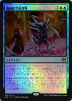 あなたがインスタント呪文かソーサリー呪文を1つ唱えるたび、無色のX/Xの構築物(Construct)アーティファクト・クリーチャー・トークンを1体生成する。Xは、その呪文の点数で見たマナ・コストに等しい。 (3)(青)(青),機械医学的召喚を追放する:あなたの墓地からすべてのインスタント・カードとソーサリー・カードをあなたの手札に戻す。この能力は、あなたがアーティファクトを6つ以上コントロールしているときにのみ起動できる。
