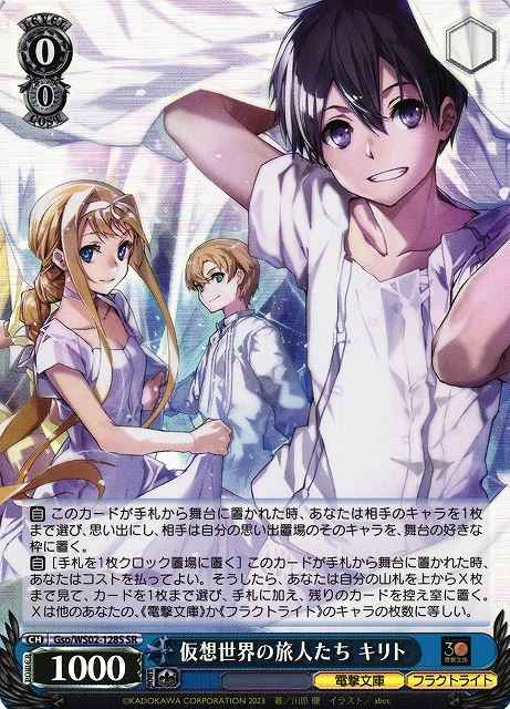 【自】 このカードが手札から舞台に置かれた時、あなたは相手のキャラを1枚まで選び、思い出にし、相手は自分の思い出置場のそのキャラを、舞台の好きな枠に置く。【自】[手札を1枚クロック置場に置く] このカードが手札から舞台に置かれた時、あなたはコストを払ってよい。そうしたら、あなたは自分の山札を上からX枚まで見て、カードを1枚まで選び、手札に加え、残りのカードを控え室に置く。Xは他のあなたの、《電撃文庫》か《フラクトライト》のキャラの枚数に等しい。