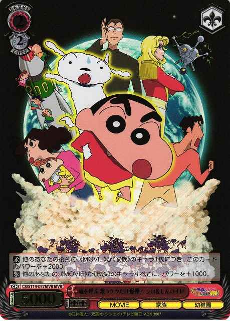 【永】 他のあなたの後列の、《MOVIE》か《家族》のキャラ1枚につき、このカードのパワーを+2000。 【永】 他のあなたの、《MOVIE》か《家族》のキャラすべてに、パワーを+1000。