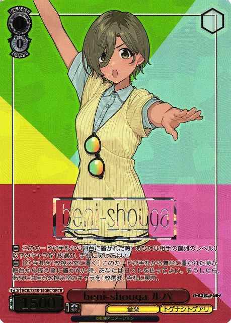 【自】 このカードが手札から舞台に置かれた時、あなたは相手の前列のレベル0以下のキャラを1枚選び、手札に戻してよい。 【自】[(1) 手札を1枚控え室に置く] このカードが手札から舞台に置かれた時か舞台から控え室に置かれた時、あなたはコストを払ってよい。そうしたら、あなたは自分の控え室のキャラを1枚選び、手札に戻す。