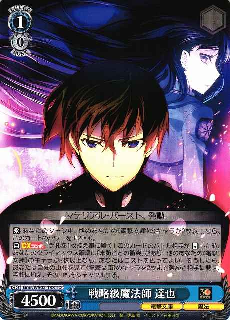【永】 あなたのターン中、他のあなたの《電撃文庫》のキャラが2枚以上なら、このカードのパワーを+2000。【自】【CXコンボ】[手札を1枚控え室に置く] このカードのバトル相手が【リバース】した時、あなたのクライマックス置場に「来訪者との衝突」があり、他のあなたの《電撃文庫》のキャラが2枚以上なら、あなたはコストを払ってよい。そうしたら、あなたは自分の山札を見て《電撃文庫》のキャラを2枚まで選んで相手に見せ、手札に加え、その山札をシャッフルする。