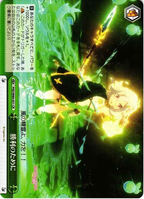 【永】 あなたのキャラすべてに、パワーを+1000し、ソウルを+1。 (トレジャー:このカードがトリガーした時、あなたはこのカードを手札に戻す。あなたは自分の山札の上から1枚を、ストック置場に置いてよい)