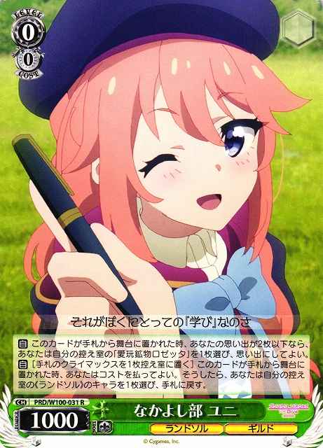 【自】 このカードが手札から舞台に置かれた時、あなたの思い出が2枚以下なら、あなたは自分の控え室の「愛玩鉱物ロゼッタ」を1枚選び、思い出にしてよい。 【自】[手札のクライマックスを1枚控え室に置く] このカードが手札から舞台に置かれた時、あなたはコストを払ってよい。そうしたら、あなたは自分の控え室の《ランドソル》のキャラを1枚選び、手札に戻す。