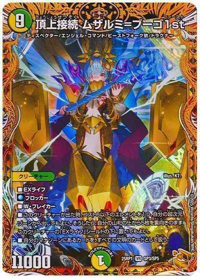 EXライフブロッカーW・ブレイカーこのクリーチャーが出た時、コスト6以下のエレメントを1つ、自分の超次元ゾーンから出してもよい。そうしたら、自分の山札の上から5枚を裏向きのままこのクリーチャーの「EXライフ」シールドの下に置いてもよい。自分のマナゾーンにあるカーを、すべての文明のカードとして扱う。