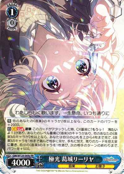【永】 他のあなたの《音楽》のキャラが2枚以上なら、このカードのパワーを+2000。 【自】【CXコンボ】 経験 このカードがアタックした時、CX置場に「もうっ! 冷たいよ!」があり、あなたのレベル置場に《音楽》のキャラがあり、他のあなたの《音楽》のキャラが2枚以上なら、あなたは自分の山札を上から4枚まで見て、《音楽》のキャラを1枚まで選んで相手に見せ、手札に加え、残りのカードを控え室に置き、自分の《音楽》のキャラを1枚選び、次の相手のターンの終わりまで、パワーを+500。