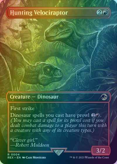 先制攻撃 あなたが唱える恐竜(Dinosaur)呪文は徘徊(2)(赤)を持つ。(あなたがこのターンにそのクリーチャー・タイプであるクリーチャーでプレイヤー1人に戦闘ダメージを与えたなら、その呪文を徘徊コストで唱えてもよい。)