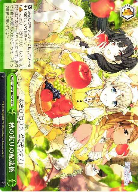 【永】 あなたのキャラすべてに、パワーを+1000し、ソウルを+1。 (トレジャー:このカードがトリガーした時、あなたはこのカードを手札に戻す。あなたは自分の山札の上から1枚を、ストック置場に置いてよい)