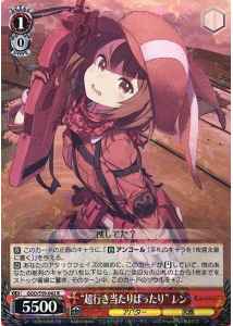 【永】 このカードの正面のキャラに、『【自】 アンコール [手札のキャラを1枚控え室に置く]』を与える。 【自】 あなたのアタックフェイズの始めに、このカードが【スタンド】していて、他のあなたの前列のキャラが1枚以下なら、あなたは自分の山札の上から1枚までを、ストック置場に置き、そのターン中、このカードのソウルを+2。