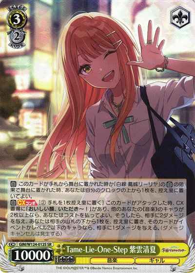 【自】 このカードが手札から舞台に置かれた時か「白線 葛城リーリヤ」の【自】の効果で舞台に置かれた時、あなたは自分のクロックの上から1枚を、控え室に置いてよい。 【自】【CXコンボ】[(2) 手札を1枚控え室に置く] このカードがアタックした時、CX置場に「おいしい顔、いただき~!」があり、他のあなたの《音楽》のキャラが2枚以上なら、あなたはコストを払ってよい。そうしたら、相手に2ダメージを与え、あなたは相手の山札の下から1枚を、控え室に置き、そのカードがイベントかレベル2以下のキャラなら、相手に1ダメージを与える。(ダメージキャンセルは発生する)