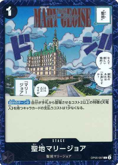 【自分のターン中】自分が手札から登場させるコスト2以上の特徴《天竜人》を持つキャラカードの支払うコストは1少なくなる。