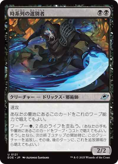 ワープ ― (黒),2点のライフを支払う。(あなたの手札にあるこのカードを、ワープ・コストで唱えてもよい。次の終了ステップの開始時に、このクリーチャーを追放し、その後、後のターンに、これを追放領域から唱えてもよい。)