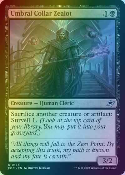 Sacrifice another creature or artifact: Surveil 1. (Look at the top card of your library. You may put it into your graveyard.)