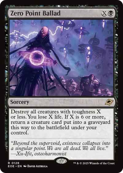 タフネスがX以下であるすべてのクリーチャーを破壊する。あなたはX点のライフを失う。Xが6以上なら、これにより墓地に置かれたクリーチャー・カード1枚をあなたのコントロール下で戦場に戻す。