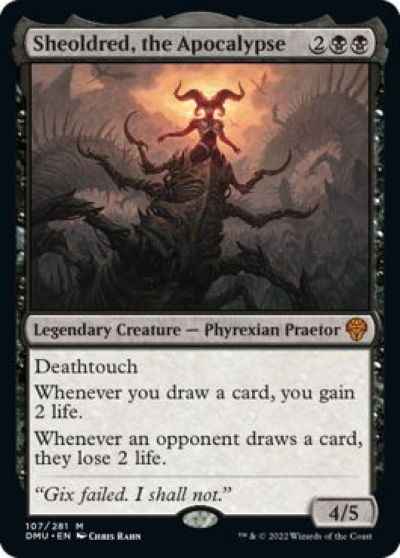 Deathtouch Whenever you draw a card, you gain 2 life. Whenever an opponent draws a card, they lose 2 life.