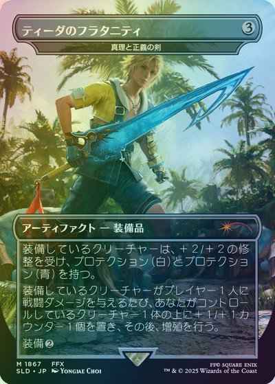 装備しているクリーチャーがプレイヤー1人に戦闘ダメージを与えるたび、あなたがコントロールしているクリーチャー1体の上に+1/+1カウンターを1個置き、その後増殖を行う。(望む数のパーマネントやプレイヤーを選び、その後すでにそこにあるカウンター1種類につき、そのカウンターをもう1個与える。)