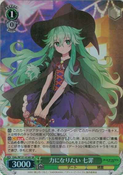 【自】 このカードがアタックした時、そのターン中、このカードのパワーを+X。Xは相手のキャラの枚数×1000に等しい。 【自】【CXコンボ】 このカードのバトル相手が【リバース】した時、あなたのCX置場に「原稿に込める想い」があるなら、あなたは自分の山札を上から2枚まで見て、山札の上に好きな順番で置き、自分の控え室の、《デート》か《精霊》のキャラを1枚まで選び、手札に戻す。