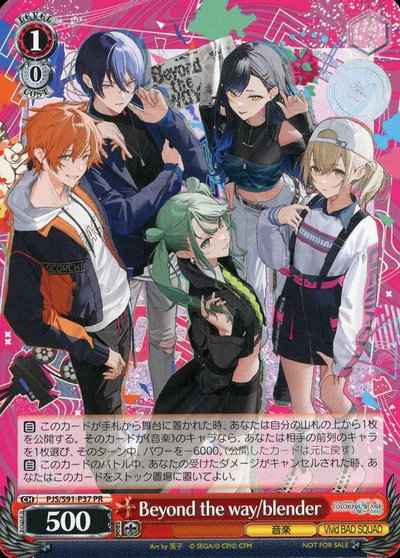 【自】 このカードが手札から舞台に置かれた時、あなたは自分の山札の上から1枚を公開する。そのカードが《音楽》のキャラなら、あなたは相手の前列のキャラを1枚選び、そのターン中、パワーを-6000。(公開したカードは元に戻す)【自】 このカードのバトル中、あなたの受けたダメージがキャンセルされた時、あなたはこのカードをストック置場に置いてよい。