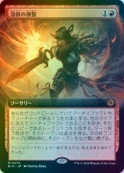 あなたがコントロールしていてアーティファクトやクリーチャーである1つを対象とする。他のタイプに加えてアーティファクトであることを除き、それのコピーであるトークン1つを生成する。ターン終了時まで、そのトークンは速攻を得る。次の終了ステップの開始時に、そのトークンを生け贄に捧げる。