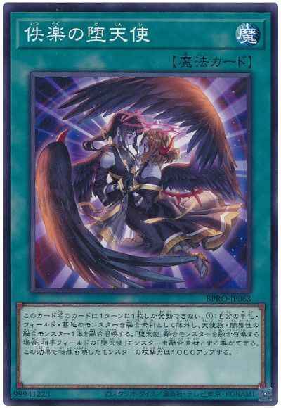 このカード名のカードは1ターンに1枚しか発動できない。(1):自分の手札・フィールド・墓地のモンスターを融合素材として除外し、天使族・闇属性の融合モンスター1体を融合召喚する。「堕天使」融合モンスターを融合召喚する場合、相手フィールドの「堕天使」モンスターを融合素材とする事もできる。この効果で特殊召喚したモンスターの攻撃力は1000アップする。
