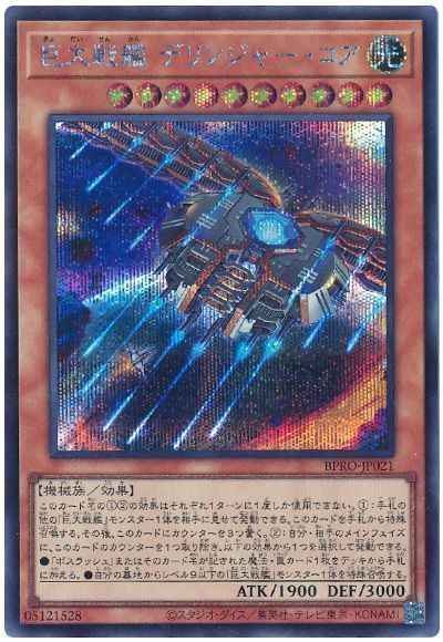 このカード名の(1)(2)の効果はそれぞれ1ターンに1度しか使用できない。(1):手札の他の「巨大戦艦」モンスター1体を相手に見せて発動できる。このカードを手札から特殊召喚する。その後、このカードにカウンターを3つ置く。(2):自分・相手のメインフェイズに、このカードのカウンターを1つ取り除き、以下の効果から1つを選択して発動できる。●「ボスラッシュ」またはそのカード名が記された魔法・罠カード1枚をデッキから手札に加える。●自分の墓地からレベル9以下の「巨大戦艦」モンスター1体を特殊召喚する。