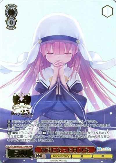 【永】 あなたのイベントは、色条件を満たさずに手札からプレイできる。 【自】 あなたのCXがCX置場に置かれた時、あなたは自分のキャラを1枚選び、そのターン中、パワーを+1000。 【起】 集中 [(1) このカードを【レスト】する] あなたは自分の山札の上から4枚をめくり、控え室に置く。それらのカードのCX1枚につき、あなたは自分の控え室のキャラを1枚まで選び、手札に戻す。