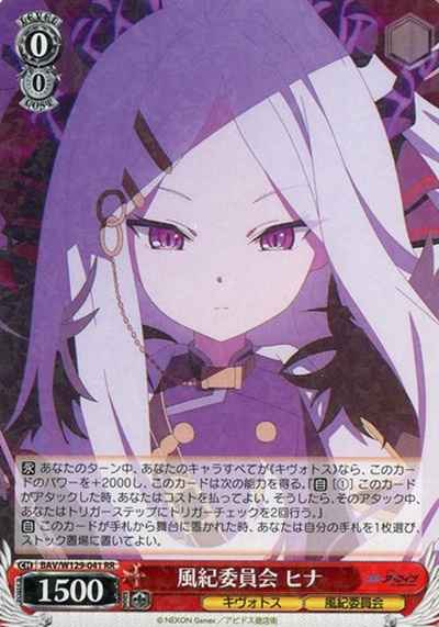 【永】 あなたのターン中、あなたのキャラすべてが《キヴォトス》なら、このカードのパワーを+2000し、このカードは次の能力を得る。『【自】[(1)] このカードがアタックした時、あなたはコストを払ってよい。そうしたら、そのアタック中、あなたはトリガーステップにトリガーチェックを2回行う。』 【自】 このカードが手札から舞台に置かれた時、あなたは自分の手札を1枚選び、ストック置場に置いてよい。