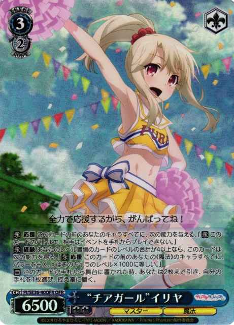 【永】 応援 このカードの前のあなたのキャラすべてに、次の能力を与える。『【永】 このカードのバトル中、相手はイベントを手札からプレイできない。』 【永】 経験 あなたのレベル置場のカードのレベルの合計が4以上なら、このカードは次の能力を得る。『【永】 応援 このカードの前のあなたの《魔法》のキャラすべてに、パワーを+X。Xはそのキャラのレベル×1000に等しい。』 【自】 このカードが手札から舞台に置かれた時、あなたは2枚まで引き、自分の手札を1枚選び、控え室に置く。