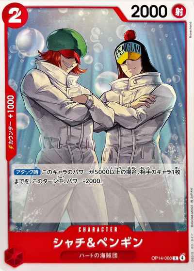 【アタック時】このキャラのパワーが5000以上の場合、相手のキャラ1枚までを、このターン中、パワー2000。