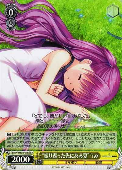 【自】[手札の《サマポケ》のキャラを1枚控え室に置く] このカードが手札から舞台に置かれた時、あなたはコストを払ってよい。そうしたら、あなたは自分の山札の上から2枚を公開し、相手はそれらのカードのキャラかイベントを1枚選び、あなたの手札に加え、残りのカードを控え室に置く。