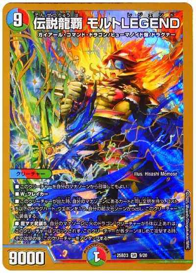 このクリーチャーを自分のマナゾーンから召喚してもよい。W・ブレイカーこのクリーチャーが出た時、自分のマナゾーンにあるカードと同じ文明を持つ、コスト5以下のドラグハート・ウエポンを1つ、自分の超次元ゾーンから出し、このクリーチャーに装備する。龍マナ武装5:自分のマナゾーンに火のドラゴン・クリーチャーが5体以上あれば、このクリーチャーはブロックされず、このクリーチャーが各ターンはじめて攻撃する時、その攻撃の後、このクリーチャーをアンタップする。
