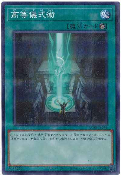 儀式モンスターの降臨に必要。(1):レベルの合計が儀式召喚するモンスターと同じになるように、デッキから通常モンスターを墓地へ送り、手札から儀式モンスター1体を儀式召喚する。