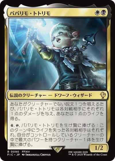 あなたがクリーチャーでない呪文1つを唱えるたび、パパリモ・トトリモは各対戦相手にそれぞれ1点のダメージを与え、あなたは1点のライフを得る。
