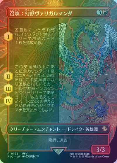 II,III,I-この英雄譚の上にある伝承カウンター1個につき(赤)を加える。あなたは、この英雄譚により追放されているカードの中からインスタントやソーサリーであるカード1枚を唱えてもよく、その呪文を唱えるために任意のタイプのマナを支払ってもよい。
