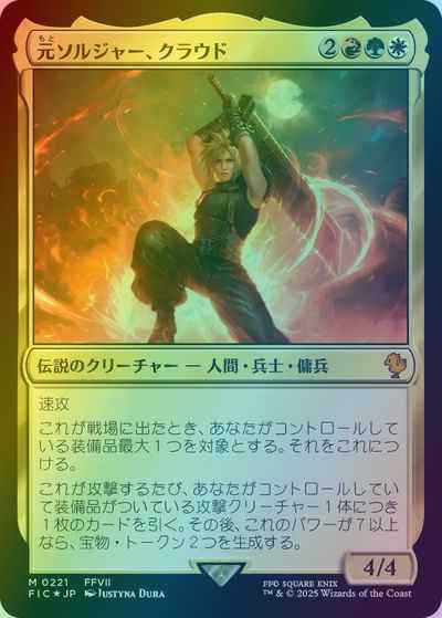 これが攻撃するたび、あなたがコントロールしていて装備品がついている攻撃クリーチャー1体につき1枚のカードを引く。その後、これのパワーが7以上なら、宝物(Treasure)トークン2つを生成する。