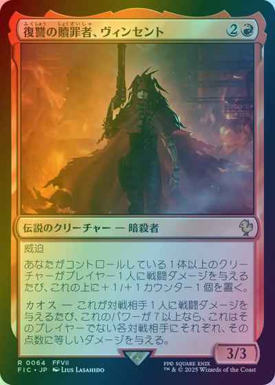 Chaos --- Whenever Vincent deals combat damage to an opponent, it deals that much damage to each other opponent if Vincent's power is 7 or greater.