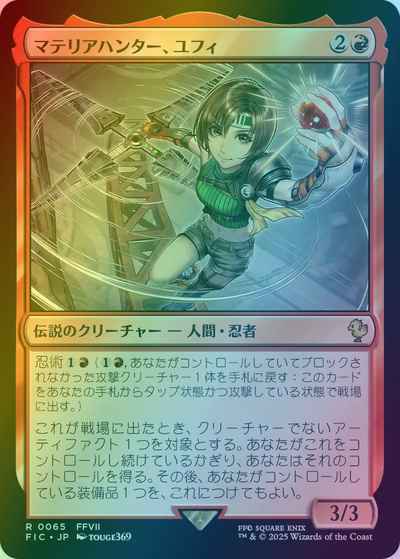 When Yuffie enters, gain control of target noncreature artifact for as long as you control Yuffie. Then you may attach an Equipment you control to Yuffie.