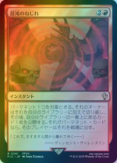 パーマネント1つを対象とする。それのオーナーはそれを自分のライブラリーに加えて切り直し、その後、自分のライブラリーの一番上のカードを公開する。それがパーマネント・カードである場合、そのプレイヤーはそれを戦場に出す。
